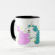 Caneca três cores de unicórnios dos desenhos animados com