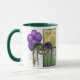 Lembrando cenas do Quarto Francês em Nova Orleans, aqui está um branco e caçador verde de 11 oz. Ringer combo caneca com uma imagem, em ambos os lados, de balões roxos, um balão de ouro, quadrados verdes e de ouro, uma linda máscara de sequin verde e roxo, e uma silhueta de uma dançarina. Ver pote de doces correspondente, copo expresso, frasco, lança, vidro de tiro, bule e portas copos. Veja toda a coleção de Mardi Gras Mug na COMIDA/BEV| Seção Pratos.