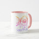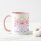 White and Pink mug with the Triple Goddess symbol and lotus in the center.