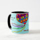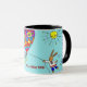 Um coelho pequeno bonito vestido na roupa ucraniana tradicional, pendura sobre a um balão dado forma coração do pysanka que o tome que sabe onde. Personalize esta caneca para alguém que deixa seu bloco.