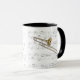 Caneca com partitura e Trombone (conteúdo). Grande presente para músicos e melómanos.