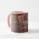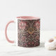 Uma caneca de café com um design de colheita restaurado digitalmente por William Morris (1834-1896), um popular designer britânico de papel de parede e têxteis. Um padrão floral de artes e artesanatos de uma vinha de mel e de tulipas cor-de-rosa.