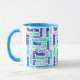 Agradecido pela primeira xícara de sua bebida favorita toda manhã? Compartilhe essas obrigados nesta caneca projetada com minha nuvem multilíngue azul e turquesa "Obrigado" em várias fontes sobre o branco.