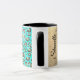 Nesta design é uma tela metálica dourada ao lado da caneca onde você pode personalizá-la então um padrão brilhante que se mistura a uma impressão leopardo-glitérica com um pano de fundo azul turquesa para contraste. Tendy Chic vibes modernas.