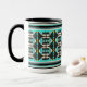 Esta peça de inspiração tribal tece uma tapeçaria de geometria com contar histórias. A turquesa ancora o design, enquanto o marfim e os elementos amarelos são ancorados através do padrão.