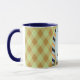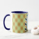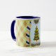 This pretty and cute mug features my original graphic art of an 'ugly sweater' with a Christmas tree on the sweater and striped sleeves. It was put on an argyle pattern in the background in gold-green color tones. It has a dark blue color inside it and on the handle. These are 11-ounce mugs, just the perfect size for your home brewed coffee or tea - or even hot chocolate! It would make a great gift, and you can put packets of coffee, tea bags or hot chocolate inside. One other gift idea is putting a little plant in it to make it extra special for your loved one. A fun Christmas Holiday gift for anyone.