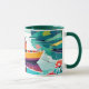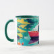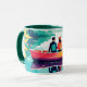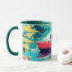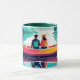 Esta é uma caneca de café da Habatour Creations original, decorada com ilustração artística autêntica, apresentando um casal, em um barco no meio de um lago, cercado por flores e corações voadores Direitos autorais de @Habatour Creations Copy ou use sem permissão é ilegal