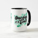 Cerâmica de 15oz, duas caneca quente, perfeita para café ou chá. Branco com interior preto e alça com o design de abertura de mão One Day at a Time.