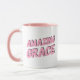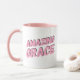 Esta caneca de café diz "Graça Incrível" em ambos os lados em uma fonte rosa.
