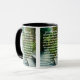 Esta caneca apresenta uma oração para a família de um primo sobre uma pintura de resort em praia mostrando um decking de madeira com fundo e tema florais. A jante e o manípulo são vidrados em cores compatíveis, disponíveis em micro-ondas e máquinas de lavar louça de tamanho 11 onças ou 15 onças, construindo cerâmica segura.