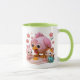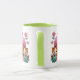 Une poule sur un mug, est étonnée par le spectacle insoutenable, quel choc, son oeuf est cassé, ses amis constatent les dégâts, pauvre poulet.