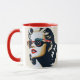Dans une ambiance vintage aux couleurs éclatantes, une femme élégante et confiante, coiffée avec des boucles soigneusement dessinées, porte des lunettes de soleil au motif du drapeau américain, mettant en valeur son style rétro raffiné avec une touche de modernité audacieuse, tandis que ses lèvres rouges parfaitement maquillées ajoutent une note glamour irrésistible à son allure sophistiquée, capturant l’essence intemporelle d’un portrait artistique à l’inspiration pop art, où le contraste entre les tons sombres et clairs sublime chaque détail de son visage lumineux et expressif.