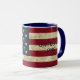 Aproveite esta caneca de café "Unida Como Um" na bandeira americana de 50 estrelas (outras cores de trim disponíveis). Faz um presente e uma declaração excelente para aqueles na sua vida ou só para si. Outro clássico dos designs Ken-Ray.