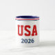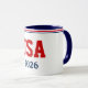 Show your Olympic support with every sip with this coffee mug shown in a red, white, and blue USA print.