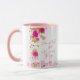 Romantic Victorian pink roses and hearts mug with romantic verse "How do I love thee, Let me count the ways" poet Elizabeth Barrett Browning.