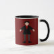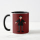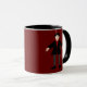 Esta caneca incrível apresenta uma imagem de arte digital de um vampiro de Halloween assustador, mas fofo. O vampiro tem cabelos pretos pontiagudos, camisa vermelha e jaqueta preta com botões vermelhos de sangue. Ele tem um sorriso assustador e longas presas brancas. Ele também tem unhas amarelas, meias roxas e calçados pretos com fivelas de ouro. Seus braços estão abertos te acolhendo por um mau.