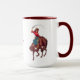 Uma vaqueira que monta um bronco bucking é caracterizada nesta caneca expressivo junto com a inscrição, "menina dura de Workin".
