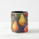 Esta charmosa caneca apresenta um design delicioso de várias frutas maduras aninhadas entre folhas verdes e belas flores florescentes. A ilustração pormenorizada inclui peras, uvas, melancias e bagas, todas dispostas numa composição harmoniosa e inspirada na natureza. Colocado contra um pano de fundo suave, o estilo botânico antigo adiciona um toque de elegância do eterno à sua coleção de teares. Perfeito para café da manhã ou chá da noite, traz um senso de beleza natural para cada gole. Uma obra adorável e funcional que transforma os momentos do dia a dia em algo especial.
