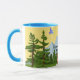 Vista de montanha com a família de veados e aves da floresta. Texto para personalização.