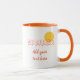 Texto de verão digitado com fonte de fusão. Um disco amarelo simboliza o Sol. Dias quentes do verão. A estação de férias no mar, na floresta ou em outro lugar agradável. Engraçado caneca de café personalizável. Você pode alterar ou excluir o texto modelo.