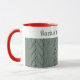 Concozinhem este inverno com uma caneca vestida de suéter quente. Esta caneca quente de inverno apresenta um padrão de suéter verde pastel mutado e o texto "Abraços e cacau quente na mesma cor. Você pode editar o texto e optar por substituir o nome existente pelo seu. Personalize esta caneca para você ou para alguém especial. Faz excelente aniversário e presente de natal. Ver a coleção de cheios dos SWEATER MUGS | VACAS E COCOA QUENTE aqui: https://www.zazzle.com/collections/sweater_mugs-119313634791423161