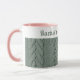 Concozinhem este inverno com uma caneca vestida de suéter quente. Esta caneca quente de inverno apresenta um padrão de suéter verde pastel mutado e o texto "Abraços e cacau quente na mesma cor. Você pode editar o texto e optar por substituir o nome existente pelo seu. Personalize esta caneca para você ou para alguém especial. Faz excelente aniversário e presente de natal. Ver a coleção de cheios dos SWEATER MUGS | VACAS E COCOA QUENTE aqui: https://www.zazzle.com/collections/sweater_mugs-119313634791423161