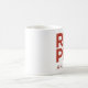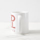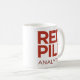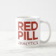 Uma caneca com o logotipo vermelho do texto da analítica do comprimido sem o fundo.
