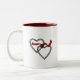 Caneca vermelha da fita dos corações de prata