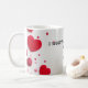 Uma caneca encantadora e acolhedora com um design de coração vermelho sonhador. A caneca exude calor e amor com sua matiz vermelha suave e radiante, complementada por um brilho sutil. Imaginem-no aninhado num ambiente pacífico, rodeado de luz suave e de atmosfera serena. Perfeito para um café matinal calmante ou um chá noturno calmante, esta caneca evoca sentimentos de conforto, afeto e serenidade.