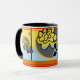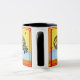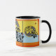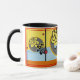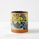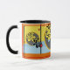 Caneca amigável contemporânea da flor com flores do estilo e bandas da listra do vermelho amarelo azul extra. Excelente para a ocasião especial ou o presente do Natal. Design original por Anne Bell.