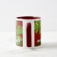O cumprimento é "Mele Kalikimaka" que Feliz Natal médio no Hawaiian. Este impressão original de matéria têxtil é envolvido em torno desta caneca de café do dois-tom.