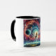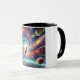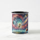 Uma caneca cósmica surreal de um viajante brilhando que percorre galáxias, cercado por planetas e estrelas atiradoras. Um design perfeito para sonhadores e entusiastas da exploração espacial.