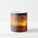 Obtenha no modo do abrandamento e beba seu café ou chá com esta caneca lindo customizável da cena da praia do por do sol. Características deste design um céu alaranjado vívido do por do sol sobre uma praia tranquilo com um ponto a entrar em seu nome ou texto no lado. Apenas entre em seu texto na caixa para personalizá-la. Se você quer mudar a pia batismal, apenas bata o botão da personalização para escolher seus próprios. Excelente para um lembrete de umas grandes férias, ou amantes da praia/oceano! Esta caneca está disponível em tamanhos diferentes e os estilos, escolhem seu favorito.