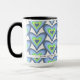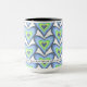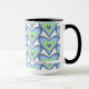 Citação de Amor e Corações em uma Bonito Caneca. "A vida é uma flor da qual o amor é o néctar." Victor Hugo. Personalize com o seu próprio nome ou uma citação surpreendente entre estes corações oculares multicolores numa decoração azul. Role ao redor desta página para ver mais ofertas do Original Artist WindyDesign em zazzle.com/windydesign