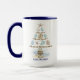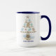 Marinho azul e litoral branco A caneca de Natal apresenta uma praia abstrato com de aquarela com estrelas e conchas de areia, vidro marinho, corda náutica, lanternas de cordas e estacas oceânicas em forma de árvore de Natal, com legenda "Seas & Saudações" (isto pode ser personalizado).