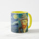 Vincent Van Gogh - Noite estelar. caneca de café. O autorretrato de Vincent está do outro lado. Você pode editar e copiar o design em outros Mugs e copos e mudar para uma cor de sua escolha se não gostar deste design.