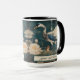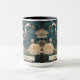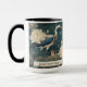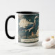 pintura em vintage de uma cena botânica com uma grua azul cercada por flores brancas de lótus