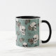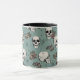Desenhada à mão a tinta preta, esta elegante caneca de Halloween apresenta um belo padrão de crânios, rosas e teias de aranha em tons de creme e de pelúcia, todos contra um elegante fundo de eucalipto vintage.