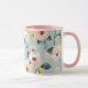 Enjoy your morning coffee with this vintage floral pattern mug featuring soft pink, cream, and yellow blossoms on a muted blue background. A beautiful gift for floral lovers, teachers, moms, and anyone who enjoys charming cottagecore style. Designed by Mud Melon.