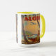 Esta é uma impressão de uma pintura vintage, digitalmente aprimorada, de uma garota nativa havaiana sob palmeiras tropicais e olhando para um avião vintage. Um pôr do sol no oceano está ao fundo. Você pode personalizar o texto nesta modelo.
