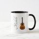 Uma caneca de guitarra acústica personalizada, com fundo branco e uma imagem de guitarra. As letras negras podem ser personalizadas com o seu próprio texto.