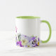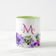 Uma elegante borda de pansias violetas, lavandas, púrpuras e brancas, de cor aquosa, num pano de fundo branco. Modelos para uma letra monográfica e um nome, letras cor-de-rosa e púrpura.