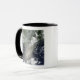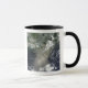 A visão por satélite de listras e fitas de petróleo clareia o reflexo do Sol ao largo do Golfo do México com poluição.