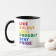 Live Bolly Love orgulhosamente, continue orgulhoso.. ... café Mug Design na tipografia moderna que diz: "LIVE BOLDLY LOVE ORGULHOSAMENTE MANTENHA ORGULHO" em um simples e limpo design minimalista. Design simples no arco-íris do Orgulho que funciona excelente para qualquer um.