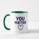 Comece cada manhã com uma mensagem que importa! Esta caneca "You Matter" cerâmica apresenta letras vermelhas ousadas e um símbolo cardíaco correspondente em um fundo preto elegante. Com uma capacidade de 11 oz, é seguro para micro-ondas e máquinas de lavar louça. Um presente sincero para amigos, família, professores, ou qualquer pessoa que precise de um aumento diário!