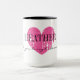 Você será minha dama de honra com coração vintage. Tamanho grande. Design de símbolo de amor rosa-néon, rupto e bonito, com tipografia elegante na escrita. Cor de fundo personalizada e nome personalizado ou monograma. Personalizar pedidos de casamento para noivas, madrinha de casamento, florista. Matriz de honra, padrinhos de casamento, etc. Faça sua própria caneca de café engraçada para primo, irmã ou irmã de direito. Acessórios de na moda para festa de casamento, chá de panela, noivado, aniversário, solteira, fim de semana de meninas, etc. Ícone romântico com texto de classe para casamento. Uma caneca de café muito grande. Também disponível como pequeno ou grande para caneca de viagem.
