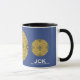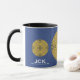 Aproveite seu café matinal em um caleidoscópio, uma caneca de presente para você e seus entes queridos. Reflexão. Harmonia e equilíbrio em amarelo com um toque de azul.