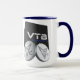 Estilo: Combo MugEngraçado, único, bonito, ou pessoal, é a sua escolha para a caneca de café perfeita. A parte externa da caneca possui uma base branca brilhante com marcas e gráficos de comunidade VTBC, enquanto a borda e a alça são vidradamente vidradas em cores ricas.