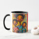 Whimsical Motherhood Mug with Inspirational Quote - Descrição personalizável da arte familiar: comemore a alegria da maternidade com esta caneca baleeira, apresentando uma ilustração colorida de uma mãe amorosa e seus filhos em um ambiente de jardim vibrante. A trabalho de arte captura uma cena alarmante com uma mãe e seus dois filhos, cercados por um vivo conjunto de flores em tons brilhantes de laranja, rosa, roxo, amarelo e verde. A mãe sorri gentilmente e veste um vestido azul escuro com padrões florais e bolinhas coloridas. As crianças, com expressões serenas, estão vestidas com um vestido roxo com flores laranja e um vestido azul com designs brancos. O fundo é um azul rico, cheio de padrões giratórios e flores florescentes que acrescentam um toque de magia e brincadeira. O verso da caneca traz uma mensagem alarmante: "Meus filhos são uma fonte de alegria e inspiração, e eu estou grato pelos belos momentos que compartilhamos!" Esta caneca pode ser personalizada com seu nome ou uma mensagem especial, fazer-a um presente pensativo para mães ou qualquer pessoa que aprecie momentos familiares. Disponível em tamanhos de 11 e 15 oz. Ideal para casa, escritório ou como um presente significativo para mães e famílias. Traga um toque de cor e inspiração para o seu dia com esta caneca de maternidade personalizável, perfeita para celebrar o vínculo especial entre uma mãe e os seus filhos.