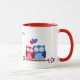 White and Red Ceramic Mug with Romantic Owl Couple Illustration and Italian Phrase